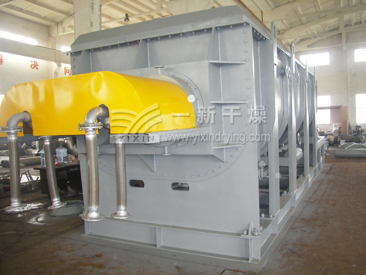 在桨叶及夹套通入热介质加热的同时,出料口上部同时进行抽湿,这样大大增加了设备的干燥强度。蒸发出来的水份由抽湿风机带出干燥机。