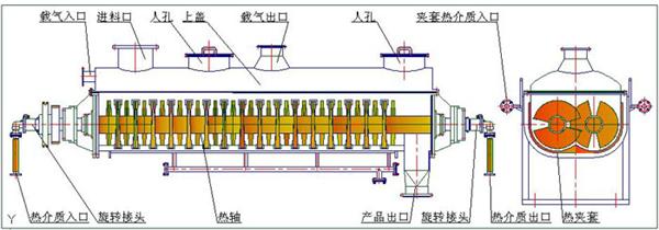 1、主机设备采用空心双桨叶干燥机,该设备适用于各类污泥干燥。