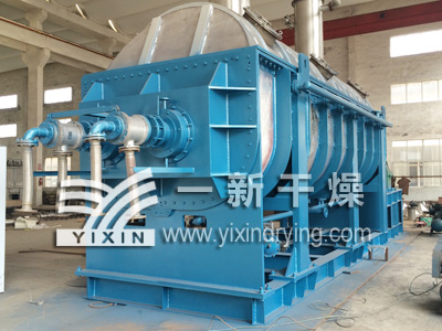 废水废液专用桨叶干燥机 空心轴上密集排列着楔形中空桨叶,热介质从空心轴流向桨叶。单位有效容积内传热面积很大。热介质温度从-40℃到320℃,可以是水,也可以是其他液体,如热水、导热油等。间接传导加热没有携带空气带走热量,热量均用来加热物料。热量损失仅为通过器体保温层向环境的散热。楔形桨叶传热面具有清洁功能。物料颗粒与楔形面的相对运动产生洗刷作用,能够洗刷掉楔形面上附着物料,使运转中一直保持着清洁的传热面。桨叶干燥机的壳体为型,壳体内一般安排二到四根空心搅拌轴。壳体有密封端盖与上盖,为防止物料粉尘外泄而充分发挥作用。传热介质通过旋转接头,流经壳体夹套及空心搅拌轴,空心搅拌轴依据热介质的类型而具有不同的内部结构,以保证较好的传热效果。