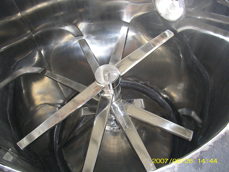 2、搅拌齿上设置刮板。物料在被搅抖齿旋转粉碎的同时,又被抛向器壁,粘在壁面上,如果不及时将粘在 器壁上的物料刮下,则会出现严重“结疤“现象,导致不能正常操作。搅拌齿上安装刮板,可以保证在物料与器壁粘结牢固前,将其剥落。