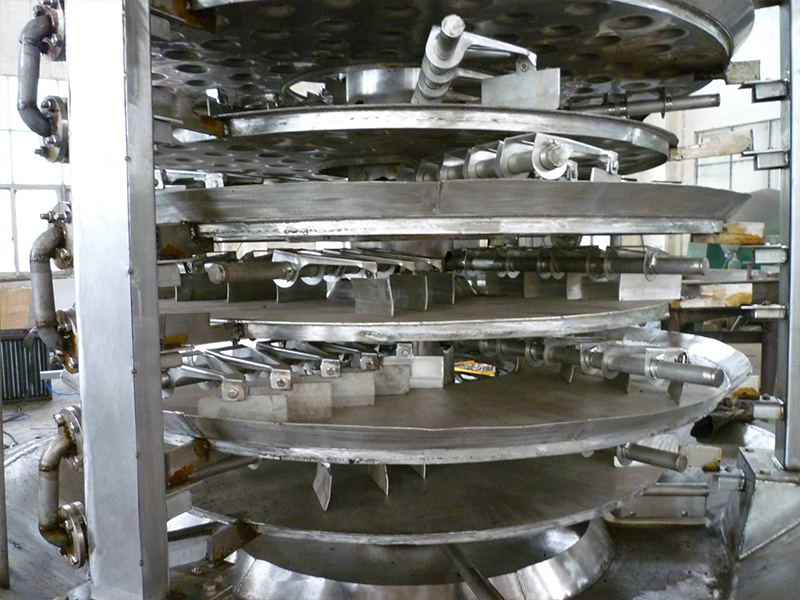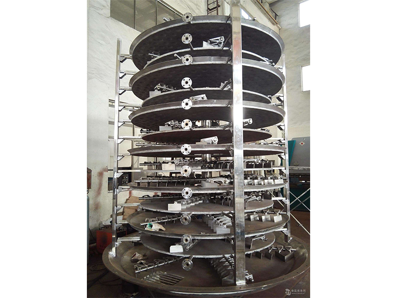 盘式连续干燥机是一种传导型连续干燥设备,其独特的结构和工作原理决定了它具有热效率高、能耗低、占地面积小、配置简单、操作控制方便、操作环境好等特点。广泛适用于化工、医药、农药、食品、饲料、农副产品加工等行业的干燥作业。在各行业使用实践中深受好评。可分为常压、密闭、真空三大类型;1200、1500、2200、3000等各种规格;A(碳钢)、B( 接触物料部分不锈钢),C在B的基础上、增加蒸汽管路、主轴及支架为不锈钢,筒体和顶盖内衬不锈钢 )三种材质,干燥面积4~180m2,共几百种型号的系列产品,并能提供与之相配套的辅助设备,可满足用户对各种物料进行干燥的需要。