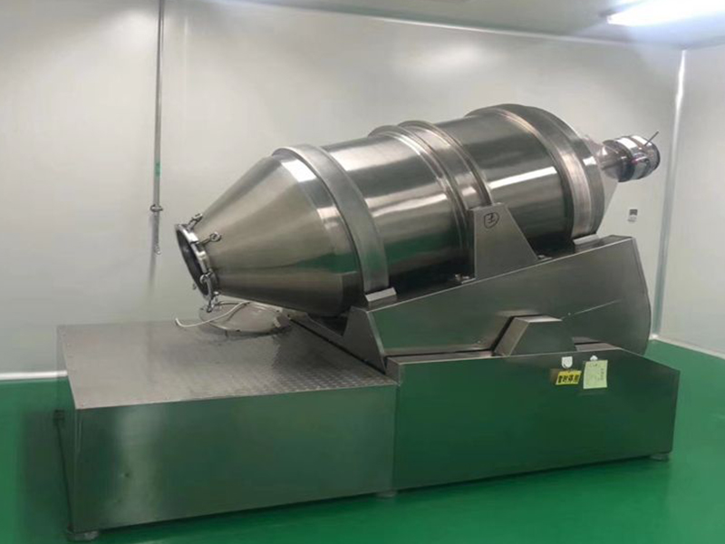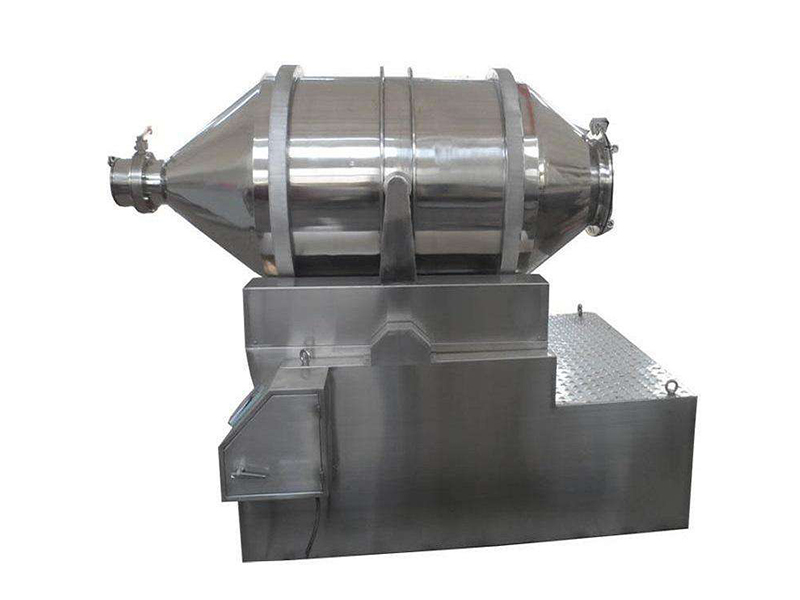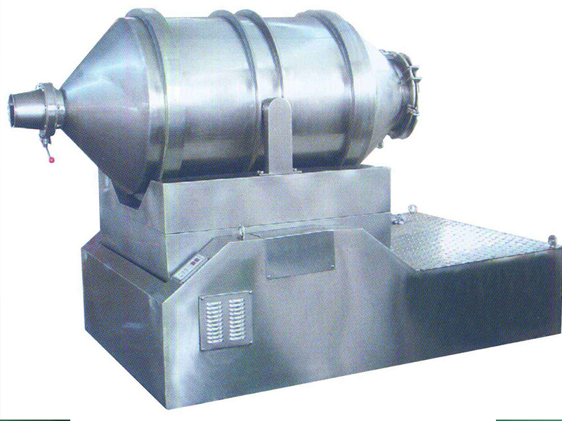 原理: EYH系列二维运动混合机主要由转筒、摆动架、机架三大部分构成。转筒装在摆动架上,由四个滚轮支撑并由两个挡轮对其进行轴向定位。在四个支撑滚轮中,其中两个传动轮由转动动力系统拖动使转筒产生转动;摆动架由一组曲柄摆杆机构来驱动,曲柄摆杆机构装在机架上,..