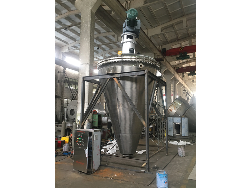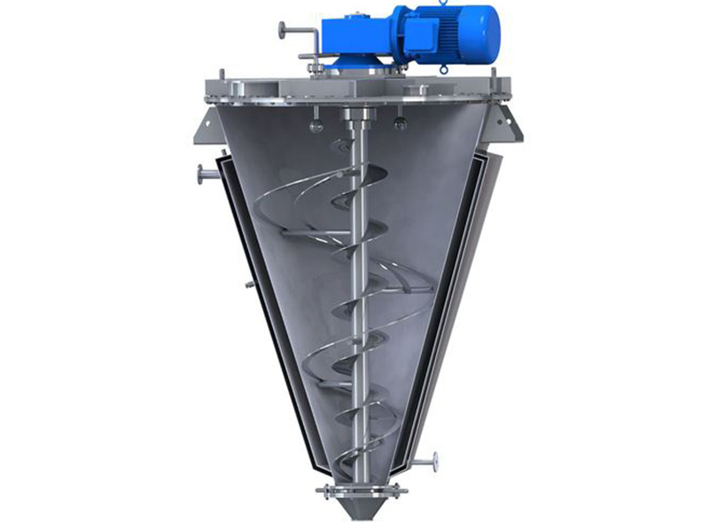 概述: 由摆线针轮减速机连接中心螺杆及外层螺带以相同转速转动。工作时,中心螺杆将混合物料由底部提升到顶部,同时线速度较大的外部螺带将物料由下而上沿锥形筒壁盘提升,二种运动在离心力作用下又将物料沿切线方向抛向空间,物料产生强烈的对流剪切、扩散,从而达到..
