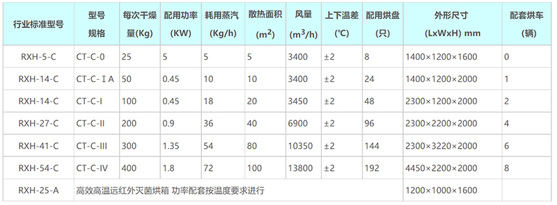 CT-C型系列热风循环烘箱配用低噪音耐高温轴流风机和自动控温系统,整个循环系统全封闭,使烘箱的热效率从传统的烘房3~7%提高到目前的35~45%,^高热效率可达50%。CT-C型热风循环烘箱的设计成功,使我国的热风循环烘箱达到了较高水平。为我国节约了大量能源,提高了企业的经济效益。1990年由国家医药管理局发布了行业标准,统一型号为RXH。