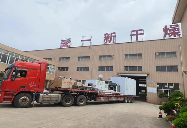 春去夏至,万木葱茏,生机勃发。在这生机勃勃的时节里,一新干燥成品发货区一片繁忙,一辆接着一辆的货车进进出出,满载着设备陆续发往客户项目现场。
