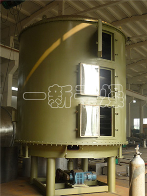 钼粉专用盘式干燥机:原理:湿物料自加料器连续地加到干燥器上部第一层干燥盘上,带有耙叶的耙臂做回转运动使耙叶连续的翻抄物料,使物料充分吸收热量,物料沿指数螺旋线流过干燥盘表面,在小干燥盘上的物料被移送到外缘,并在外缘落到下方的大干燥盘的外缘,在大干燥盘..