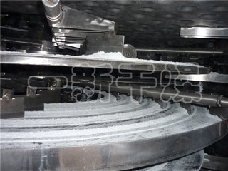 2.3盘面凹凸不平:针对同行业厂家产品中这一难以避免的问题,我公司进行了多次试验,^终很好的解决了这一难题。大盘面外挡料圈及小盘面内落料圈均为钢板一次性鼓压成型,大盘外沿上压制为圆弧,小盘面下压制为圆弧,使盘面硬性大大加强的同时也更加平整,更好的防止了物料的翻料。
