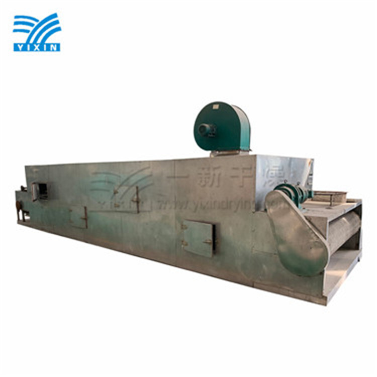 物料参数:1、物料名称:赤污泥 2、产量:4~5T/h 3、初水分:24~42% 4、终水份:10% 5、干燥温度:150℃6、出风温度:70~85℃设备选型:  DW5-2.0×14,单台有效烘干面积:140m²,共2台,能满足产量要求  脱水污泥铺设在透气的烘干带上后,被缓慢输入干化..